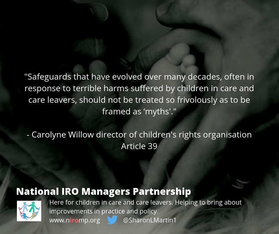 Firstly NIROMP wishes to give recognition and thanks to Article 39 and their legal advisors for analysing and responding to this government document, which was published without consultation. Carolyne Willow, Director of Article 39 co-ordinated the joint letter with 50 signatories including NIROMP. She said: