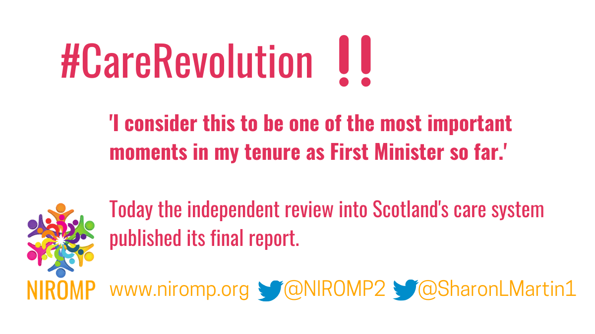 We at NIROMP applaud all who contributed to Scotland Care Review, most especially the children and people with lived experience. Change is needed across Scotland as it is across England. We look forward to keeping the conversations alive, to shared learning and to hearing more about how #ThePromise is being delivered.