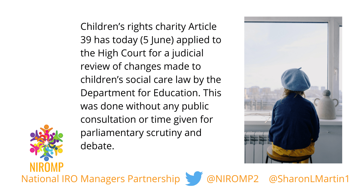 Article 39 has applied to the High Court for a judicial review of secondary legislation that dilutes or removes a series of duties, including around the arrangements under which social workers must visit children in care and IROs must carry out reviews of children’s care plans.
