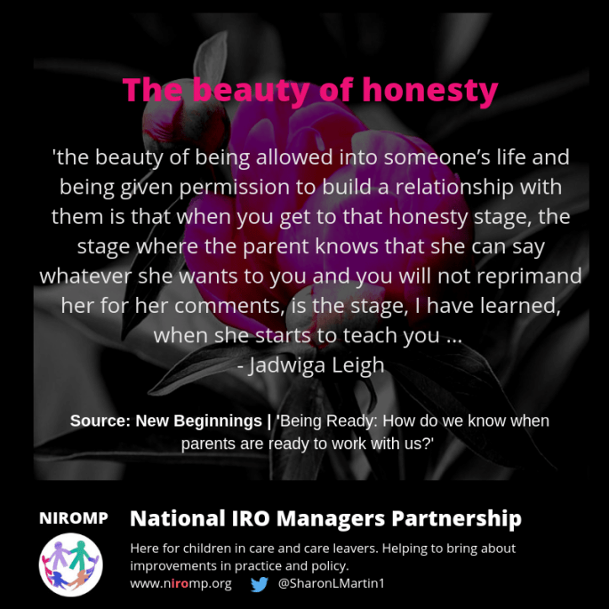 New Beginnings is a concept which has been inspired by the Flemish organisation 'Stobbe'.Ā Comparative research carried out by Leigh (2013; 2014; 2017) into the way in which services are provided in Flanders, Belgium and England, found that in FlandersĀ residential centres are effective in providing better outcomes for children and parents. The findings showedĀ that once parents … Continue reading Being Ready: How do we know when parents are ready to work with us? | Jadwiga Leigh