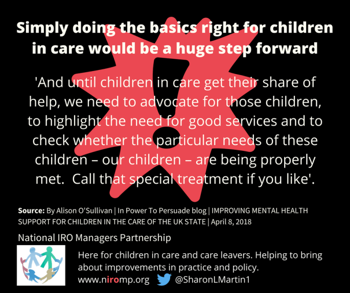 Improving Mental Health Support for Children in the Care of the UK State https://t.co/07TlxcV1QD ā Power to Persuade (@PowerToPersuade) 8 April 2018 Alison OāSullivan explores the role of corporate parenting at a time of increased focus on meeting the mental health needs of children in the UK, making the case for improved mental health support … Continue reading Improving mental health support for children in care