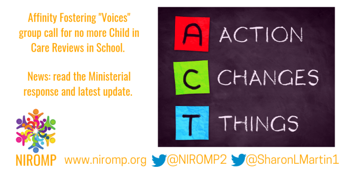 On 7th August NIROMP shared the story of a group of young people who had got in touch with the (now former) Children’s Minister. The group have shared a video to illustrate the problems with holding child in care reviews in school. Affinity's young person group, "Voices" created this video to illustrate the problems faced … Continue reading Ministerial letter to children – what you should expect from your Child in Care Review