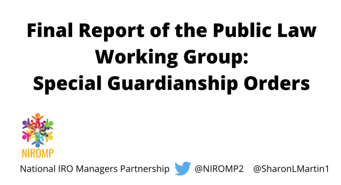 Message from the President of the Family Division Since its addition to the canon of orders that are available to the Family Court in 2005, the role of a Special Guardianship Order has changed and developed. It is plain that SGO’s have a useful role to play, and are the right order to make in … Continue reading Public Law Working Group Recommendations to achieve best practice in the child protection and family justice systems:Special guardianship orders | June 2020