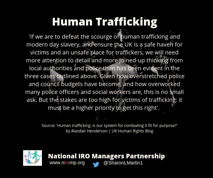 Human trafficking or modern slavery is one of the most appalling forms of criminal activity today. Itās also one of the most widespread and fastest-growing. The International Labour Organisation believes that at any one time at least 40.3 million people around the world are being coerced into a situation of exploitation or made toĀ work⦠Read … Continue reading Human trafficking: is our system for combating it fit for purpose? ā UK Human Rights Blog