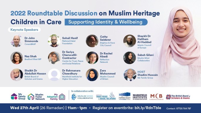 Source: My Foster Family Posted 25 April 2022 NIROMP are pleased to share this event hosted ShadIm Hussain, CEO. Join the Annual Roundtable Discussion on Muslim Heritage Children in Care on supporting identity and wellbeing. Join with sector professionals, academics, foster carers and adopters as well as the lived experience of Muslim care experienced young … Continue reading Annual Roundtable Discussion on Muslim Children in CareĀ