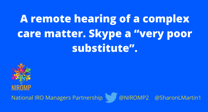NIROMP have produced the following guidance for Independent Reviewing Officers and IRO Managers. It will be kept under regular review by NIROMP to ensure that it reflects the evolving picture and that IROs and IRO Managers have the practice guidance required to support them in their work. COVID-19: Guidance for Independent Reviewing Officers and IRO … Continue reading COVID-19: Guidance for Independent Reviewing Officers and IRO Managers
