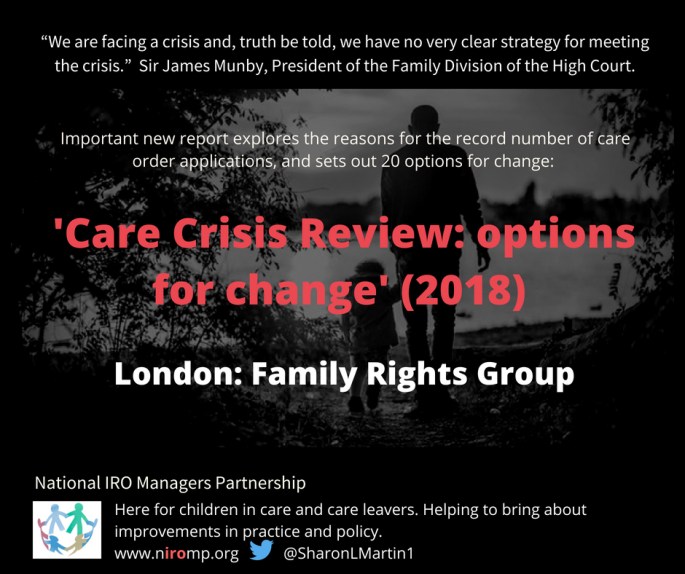 Family Rights Group have facilited a seven month sector-led Review into the care crisis. The Review is supported by stakeholders within the child welfare and family justice system. The Review's aims: to examine the reasons for the rise in care proceedings and number of children in care to at all times retain a focus on … Continue reading New: #carecrisisreview report