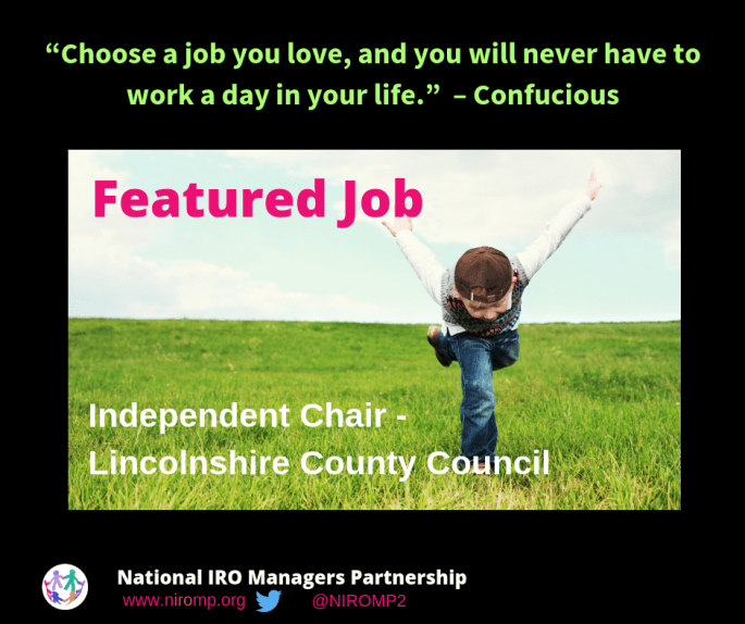 Independent Chair Independent Chair We currently have an exciting opportunity for an Independent Chair. This is a full time qualified Social Worker post. The successful applicant will have a minimum of five years post qualifying experience working with children and families and ideally some supervisory experience. This is a county wide post and the office … Continue reading Feature job: Independent Chair | Lincolnshire County Council