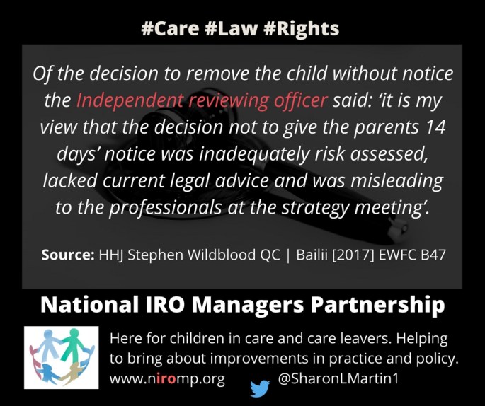 IRO scrutiny in a case which saw a child unlawfully removed from their mother’s care