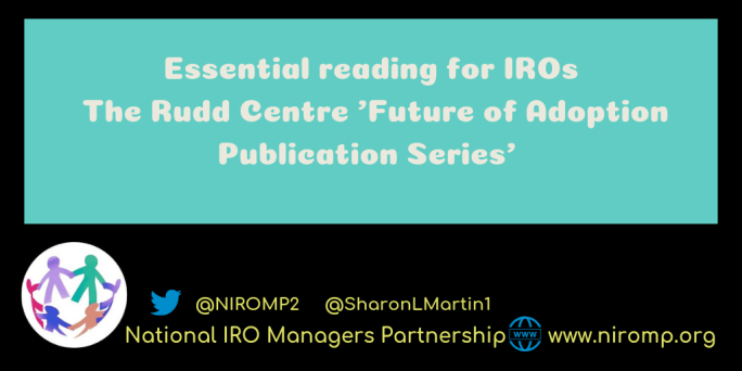 Source: The Rudd Centre, Adoption Research Program Future of Adoption Publication Series – essential reading for IROs Adoption practice, especially with regard to separating birth and adoptive families, has changed dramatically in the past several decades and the latest publication in this Future of Adoption Publication Series addresses the issue of contact. Two papers address … Continue reading Future of Adoption Publication Series | Rudd Adoption Research Program UMassAmherst