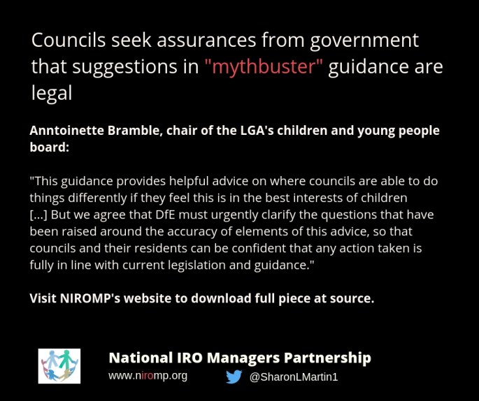 https://twitter.com/article_39/status/1044228320622235650 Read at source: Councils seek urgent assurances on controversial 'mythbuster' guidance | Children & Young People Now