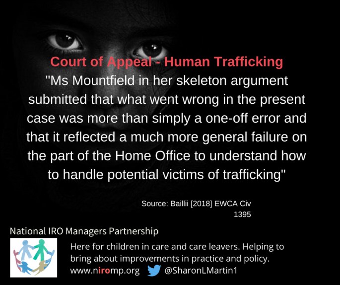 Home Office wrongly detained child victim of trafficking then released with no arrangements or protection from trafficking and risk of other violations despite solicitor intervention. The child immediately disappeared.Ā This appeal case brought by the Equality and Human Rights Commission found that theĀ Secretary of State acted in breach of her duty under article 4 of … Continue reading Court of Appeal – Human Trafficking